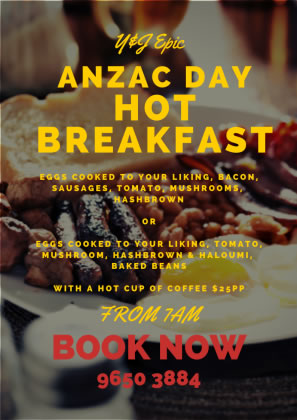 Melbourne / 03 9650 3884Website | EmailANZAC Day Hot Breakfast